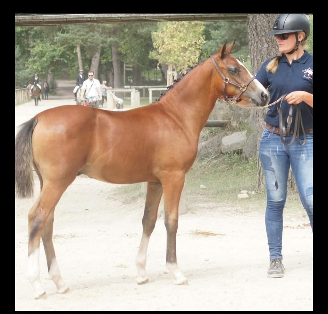 OUACHE DES LICHERES (ATCHOUM DES LICHERES PFS et ROSE DES VENTS OC par IDEAL DE COIFFERIE NF) a terminé deuxième des foals âgés mâles au Sologn’Pony 2024. J’ai fait ce croisement, car l’année d’avant, j’ai eu une chouette pouliche issue du même croisement . Possédant encore des paillettes congelées , je suis allée à la facilité. OUACHE a tout de suite eu du charisme, et je lui trouvais pas mal de points forts alors je me suis dit que de l’emmener au local confirmerait ou non mon opinion. Il a terminé ex-æquo avec un demi-frère, le hasard a fait que cette année, j’étais disponible pour aller au Sologn’Pony, donc on a poursuivi jusqu’à Fontainebleau, j’étais vraiment très satisfaite pour cette seconde expérience au National !